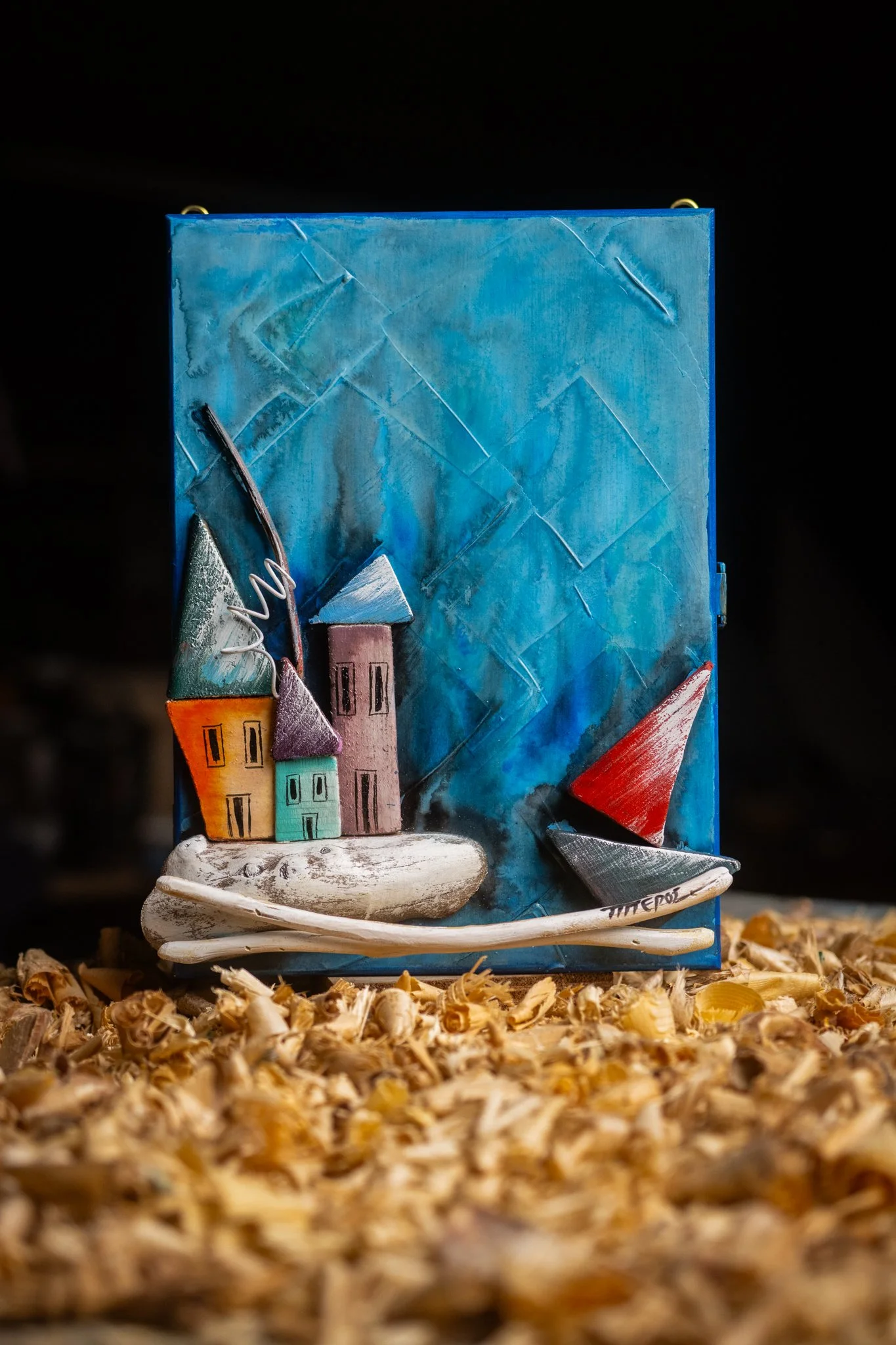 Wooden Hanger with Houses & Boat. Dimensions 25x30x5cm / 420 gr